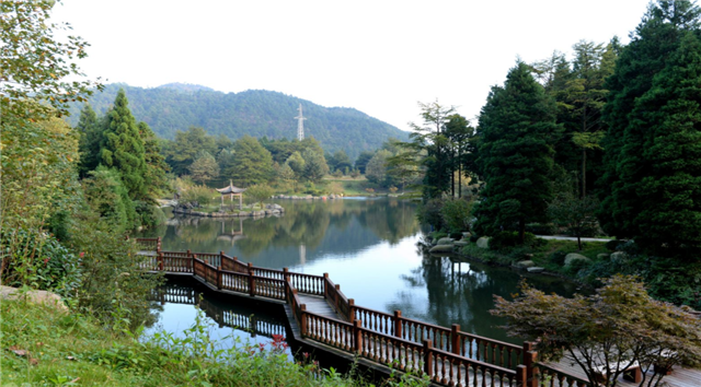 浙江四明山国家森林公园位于浙江省东部四明山腹地的余姚、鄞州、奉化、嵊州、上虞五市区,呈东西向狭长形分布,省道浒溪线穿境而过,具有第二庐山之称,森林覆盖率96%以上,园内空气清新,含氧成份高。四明山风景资源众多,类型丰富,品质优良,分布面广。因林深茂密,青山碧水,各种鸟兽出没其间,生态环境十分优越,被誉为天然“氧吧”。它保存着良好的山水景观、历史文化、农业资源、风土人情以及民俗传统。